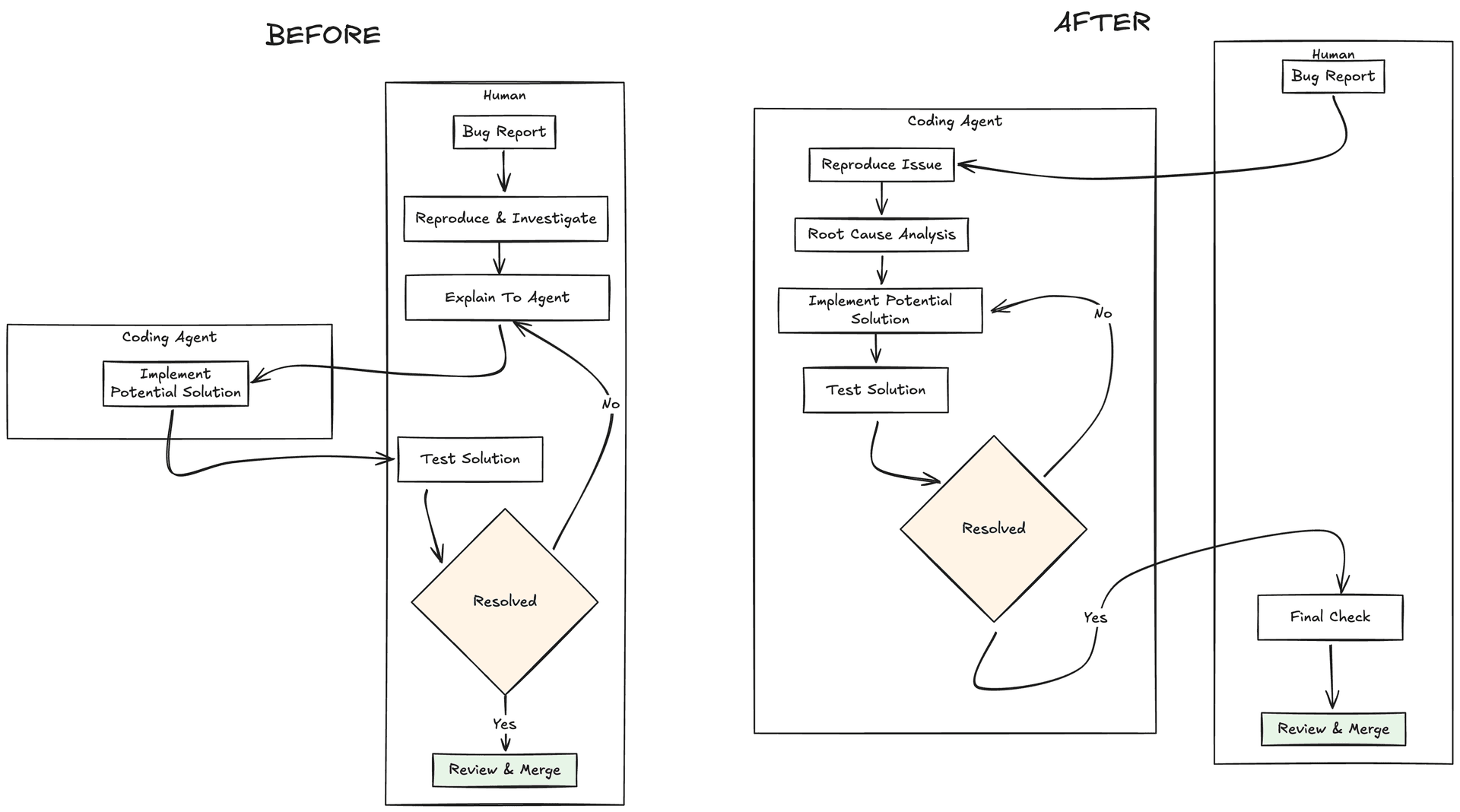 Let's take fixing a bug. Even today, developers start by reproducing it manually, sharing the reproduction steps with a coding agent, then letting it implement a fix. The onus is then on you to verify if the solution worked or not - coding agents have a nasty habit of declaring victory before the battle is won. The most reliable antidote is to give coding agents the ability to check their own work, be that with tests, or with browser access.