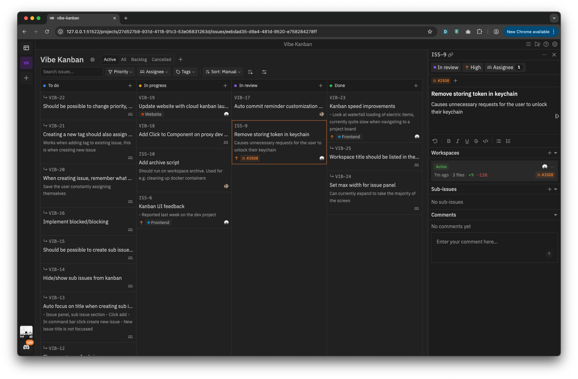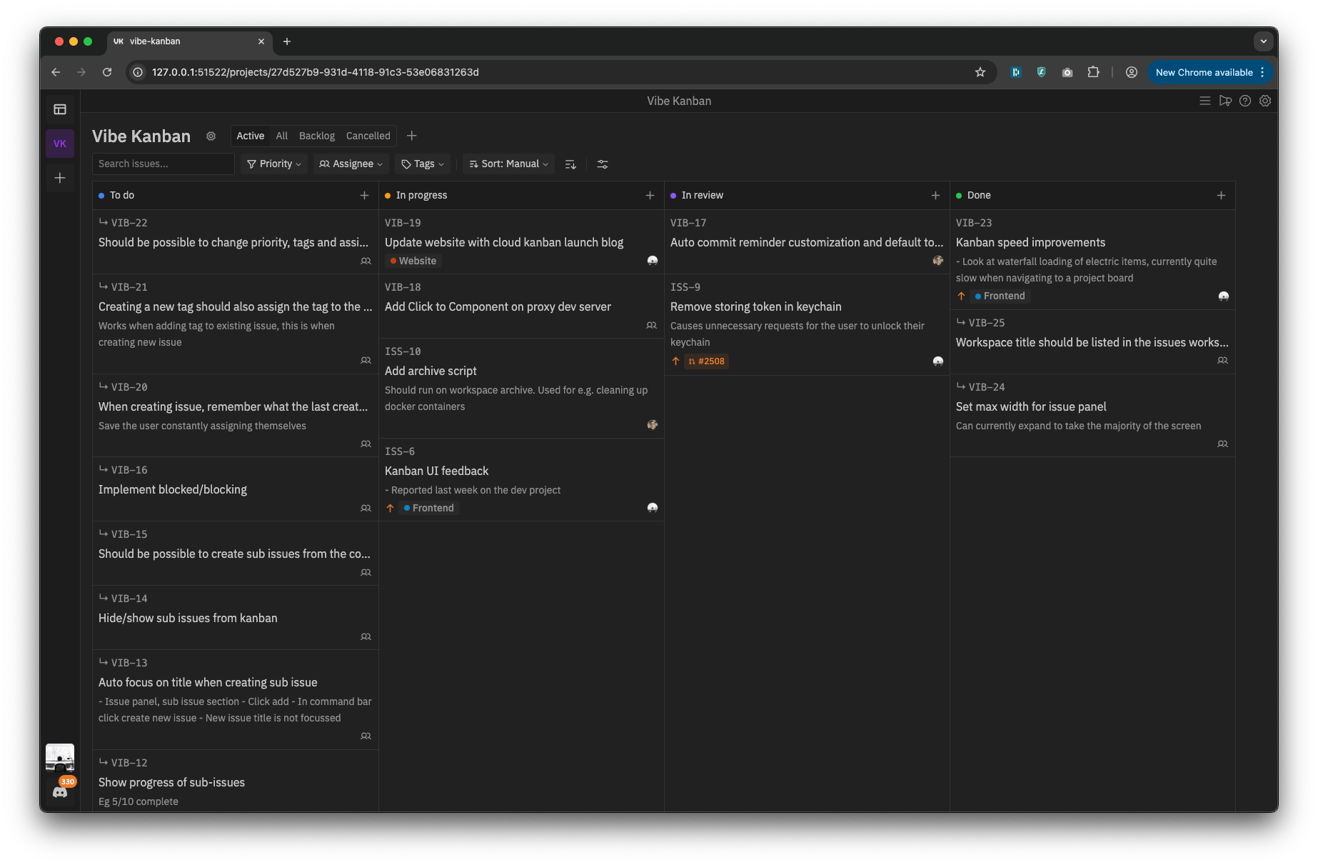 Our goal was to enable small teams to organise their entire backlogs, work with coding agents, review code and QA changes, all without leaving Vibe Kanban.